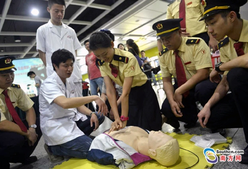 5月8日是第69個世界紅十字日,省市紅十字會、省中醫(yī)院、廣州地鐵公司,聯(lián)合舉辦以“博愛奉獻(xiàn)、生命救護(hù)、全程為你”為主題的急救技能培訓(xùn)走進(jìn)廣州地鐵活動,多單位攜手將“急救白金十分鐘”的理念和技能送進(jìn)地鐵。
