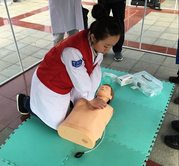 (圖為:心肺復(fù)蘇模擬人練習(xí))