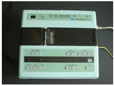 XD-7100單道心電圖機是一臺具有交直流二用功能、體積小巧、易于攜帶的心電圖機,適用于臨床診斷、搶救及心電監(jiān)護。 (一)特點 1.本機設(shè)計安全,符合GB9706.1-95,I類B型及防除顫功能,為被檢查人提供了可靠的安全保證。 2.本機采用位置反饋記錄裝置,頻響高,阻尼特性好,描記所得心電圖波形清晰、真實。 3.本機具有交直流二用功能,機內(nèi)裝有可充電電池的充電裝置,交、直流轉(zhuǎn)換使用極其方便。 4.本機具有二種干擾抑制電路、即交流干擾抑制及人體肌電干擾抑制,能在各種惡劣的環(huán)境下,獲得較滿意的心電圖記錄。 5.本機采用輕觸型開關(guān),轉(zhuǎn)換導(dǎo)聯(lián),驅(qū)動走紙均極為方便。 ( 二)主要指標(biāo) 1.電源 交流(220V 50Hz)、直流兩用(自充電)。 2.走紙速度 分25 mm/s 和50 mm/s 兩檔。 3.增益 分1/2、1、2三檔。 4.工作狀態(tài) 分停止、觀察、記錄三檔。 (三)操作規(guī)程 1.接好地線,通電預(yù)熱。 2.定標(biāo) 用1mv 標(biāo)準電壓的矩形波在記錄紙上應(yīng)顯示10mm 的幅度。 3.連接導(dǎo)聯(lián)線 紅電極連接右上肢,黃電極連接左上肢,綠電極連接左下肢,黑電極連接右下肢,胸電極連接胸部導(dǎo)聯(lián)位置。 4.觀察 利用工作狀態(tài)的觀察檔和移位旋鈕,將心電圖的波形置于記錄紙的中間位置。 5.記錄 觀察心電波形穩(wěn)定后,利用工作狀態(tài)的記錄檔,走紙記錄心電圖。 6.利用導(dǎo)聯(lián)鍵切換不同的導(dǎo)聯(lián)。