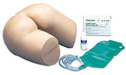 You will appreciate the convenience of having a Life/form® simulator to teach enema procedures. Use it for group demonstrations and practice sessions of any size. Each student can realistically practice administering an enema using this lifelike model. The standard enema procedures can be performed using conventional enema apparatus - no special equipment is required. All aspects of the simulator are lifelike in every detail. The upper buttock is flexible so that the trainee must raise the buttock in order to locate and make insertion into the anus. The simulator is portable and easy to use. A drain tube is provided so that the fluid can be drained directly into a large container or sink, for continuous use. Includes a hard carrying case, enema administration set, and teaching guide. Three-year warranty. Size: 18" x 18" x 12".
